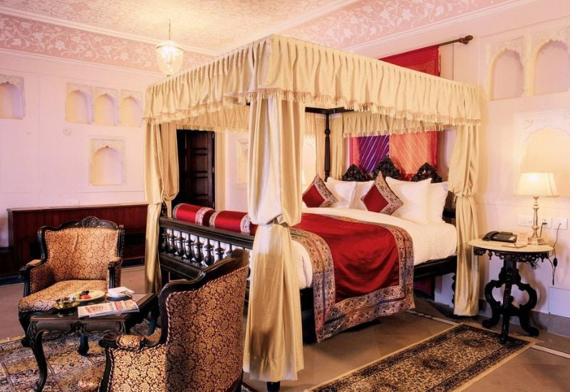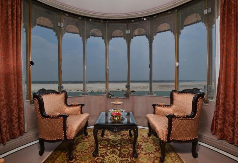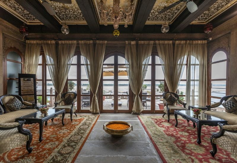 Constructed in the 18th century by the Royal House of Nagpur, the palace has undergone a meticulous restoration. The revival has unveiled stunning murals, intricately hand-painted ceilings, and exquisite carvings, ensuring that the structure harmonizes with the enchanting ambiance of the city. Accessed by boat, the hotel immediately imparts a sense of entering a remarkable destination. The central courtyard, adorned with lush plants and sculptures, is encircled by a series of ornate sandstone pillars and arches. Throughout the hotel, Banarasi silk and gold leaf embellish the decor, while the rooms are elegantly appointed with wooden four-poster beds and exquisite Indian textiles.