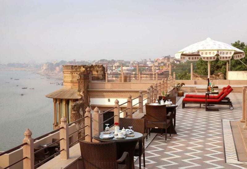 The restaurant offers delectable vegetarian dishes, and guests can enjoy tea, freshly ground coffee, and traditional thandai in the open air. In the evenings, live classical music fills the lounge. Few places on earth rival the uniqueness of Varanasi, so be sure to take time to ascend to the rooftop and absorb its extraordinary atmosphere.
