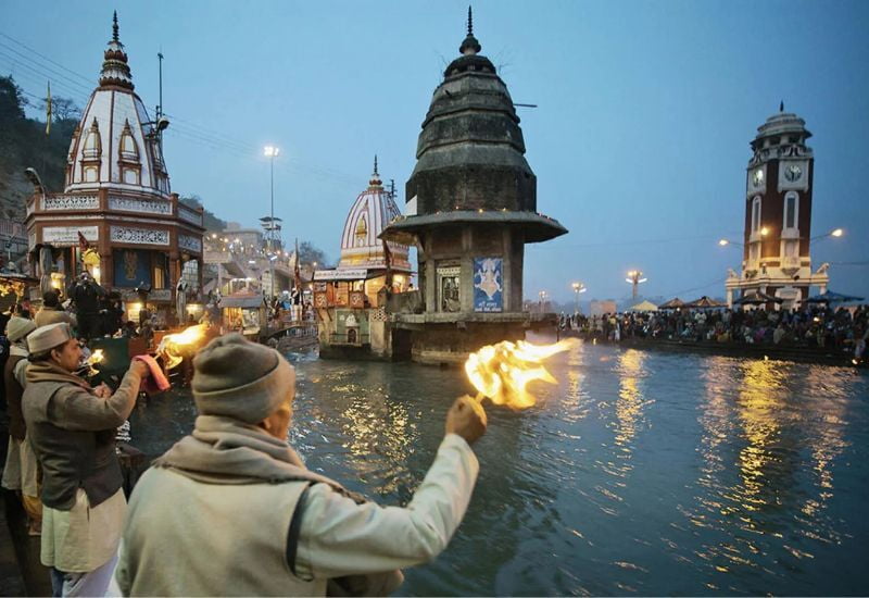Additionally, the famous 'Har ki Pauri' ghat is in close proximity to the Haveli Hari Ganga Hotel. This ghat, a historical site associated with King Vikramaditya, attracts numerous devotees who gather for the 'Ganga Aarti', illuminating the river with thousands of floral diyas.