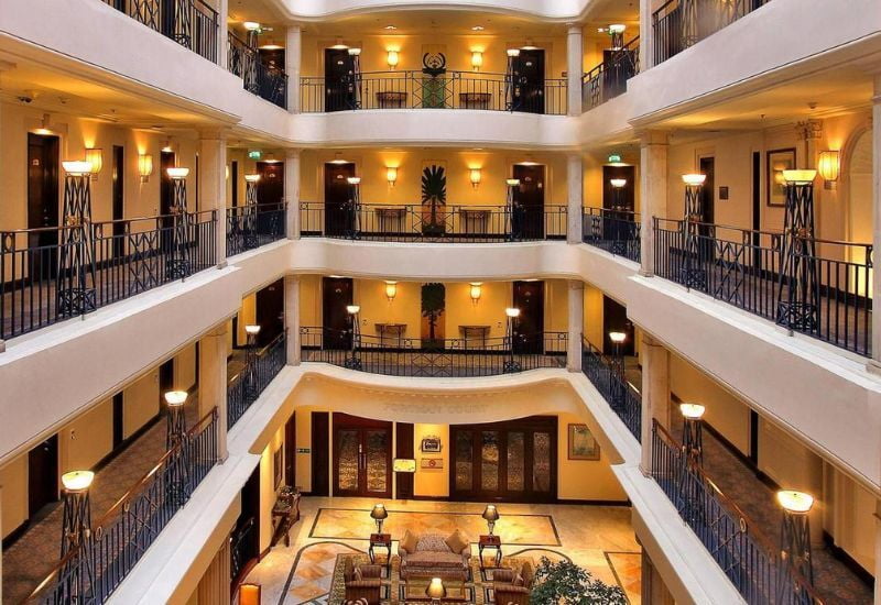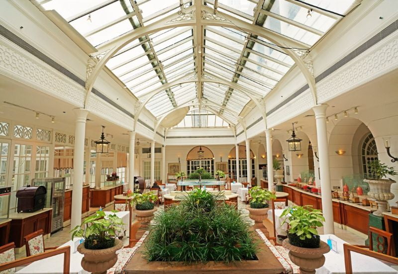 The ITC Windsor in Bengaluru seamlessly combines a classic atmosphere with global hospitality, offering a hotel experience that surpasses expectations. Renowned for hosting the world's elite, the hotel features colonnades, balustrades, and chandeliers, elegantly situated on a promontory overlooking the lush landscapes of the Bangalore Golf Club.