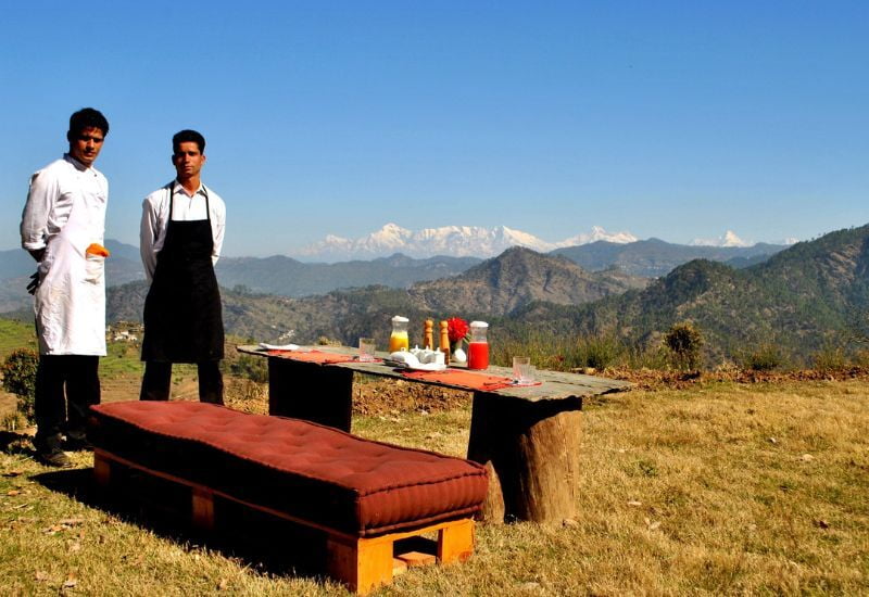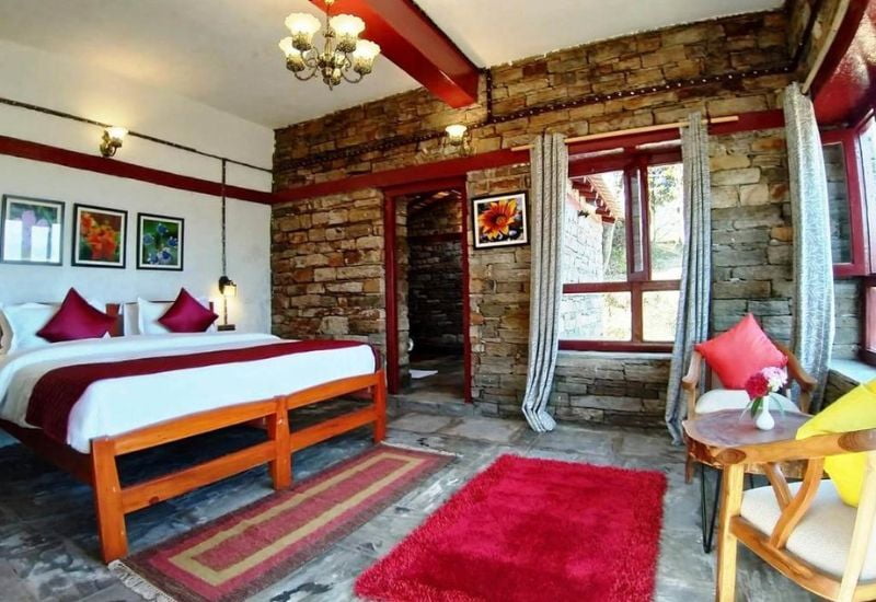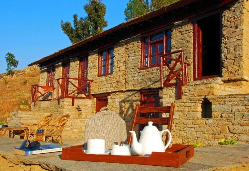 Guests can enjoy breathtaking views of the Himalayas, including the impressive Nanda Devi. The estate's century-old traditional Kumaoni stone house has been meticulously restored, offering three elegantly designed en suite bedrooms.