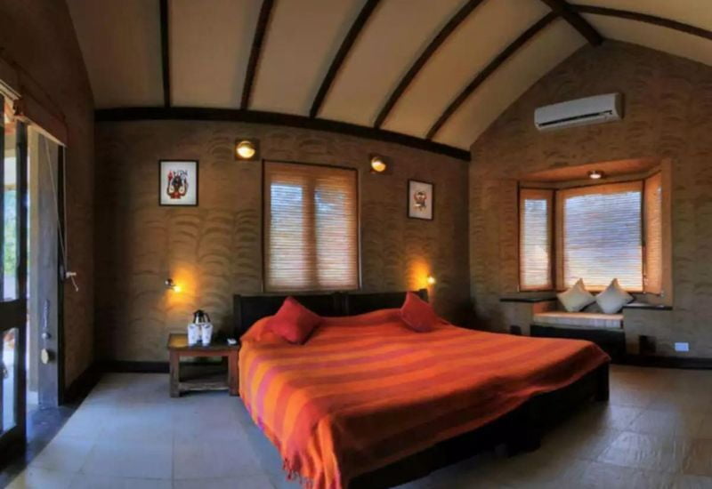 All of the 18 cottages including the 8 cottages that are built on silts sport a rustic décor and draw inspiration from the simple huts that belong to the local community. With mud washed walls and striking furnishings crafted from recycled wood, all rooms open out onto either a veranda or a balcony and offer spectacular views of the surrounding forests.