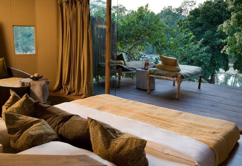 Perched on the banks of the Banjaar River, Banjaar Tola offers a luxurious African-style safari camp experience, enhanced by contemporary design elements and local influences such as Bastar tribal art, artisanal furniture, and exquisite block-printed fabrics from Madhya Pradesh.