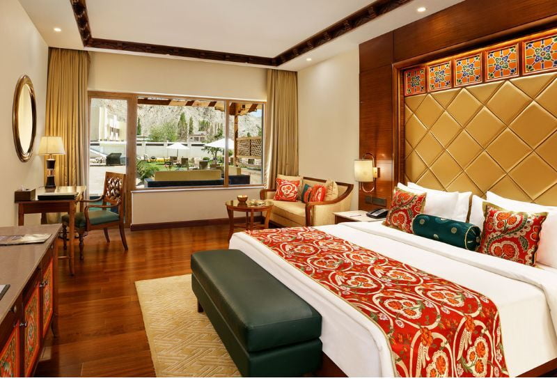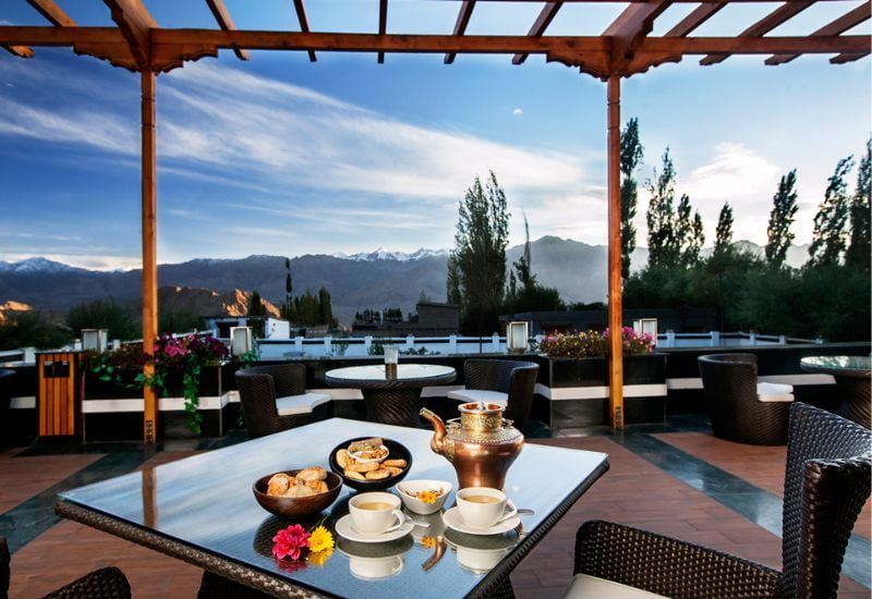 The sophisticated Tusrabs restaurant provides a view of the gardens and specializes in authentic Ladakhi, Tibetan, and Chinese dishes. Meanwhile, the Zasgyath coffee shop, adorned with vibrant traditional Ladakhi woodwork, offers breathtaking views of the Stok Kangri mountain range while presenting a diverse menu and freshly baked goods from the in-house bakery to accompany your refreshing beverages.
