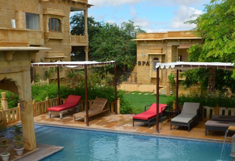 Guests can enjoy a refreshing swimming pool, providing respite from the desert heat, as well as a small spa. Additionally, the charming rooftop restaurant serves local and international cuisine, offering stunning views of Jaisalmer and the golden fort.