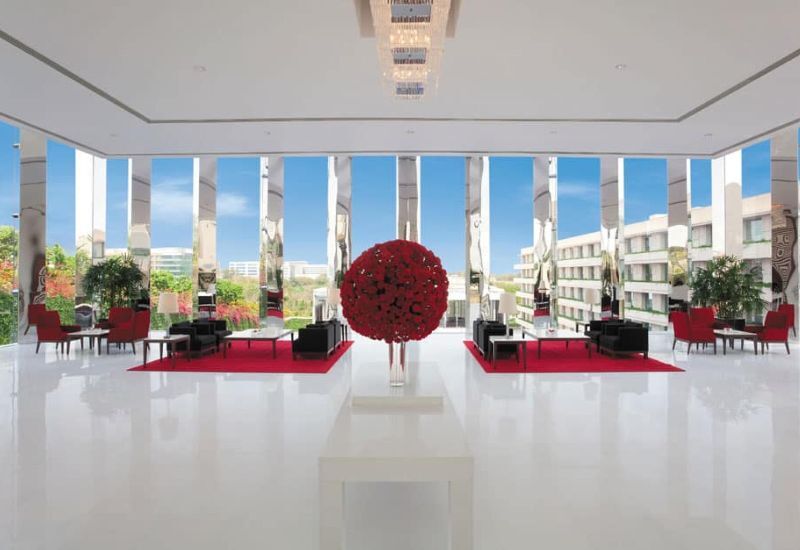 The Oberoi Gurgaon is an elegant and refined hotel situated merely 15 minutes away from both international and domestic airports in Delhi. Nestled within nine acres, it serves as an urban retreat characterized by its modern architectural elements and outstanding amenities.