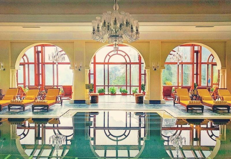 The most remarkable view may be experienced from the outdoor whirlpool at the spa, which becomes even more enchanting with winter snow, while the indoor swimming pool adorned with chandeliers provides a splendid ambiance. The restaurant, located in a delightful glass conservatory with an outdoor terrace, offers a diverse menu of pan-Indian, Asian, and Continental dishes, while the wood-paneled Cavalry Bar evokes the nostalgia of the Raj era.