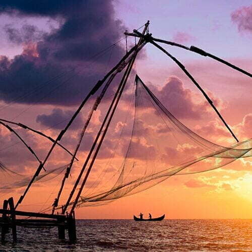 Spend the day exploring the old colonial district of Fort Cochin. Tucked away in the narrow streets of Fort Cochin are a number of delightful art galleries, cafés and interesting clothes boutiques, as well as centuries-old houses. You will visit the residence where Vasco da Gama stayed when he was here in the early 16th century, and have a look around India’s oldest church, as well as one of one of the region’s few surviving synagogues down in Jew Town, near Mantancherry, site of a Keralan palace with superb traditional murals. Around sunset time, watch local fishing boats chug past the famous Chinese fishing nets. Venture out in the evening for a performance of Kathakali dance.