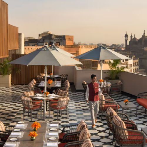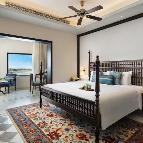 The exterior features terraces where guests can relax while enjoying views of the river, sipping tea or basking in the sunlight. The hotel comprises 32 air-conditioned rooms and suites distributed across multiple levels, many of which overlook the inner atria, with some offering river vistas. Each room is tastefully decorated in a traditional style that pays homage to the local aesthetic, showcasing the rich, vibrant colors of the renowned silks of Varanasi.