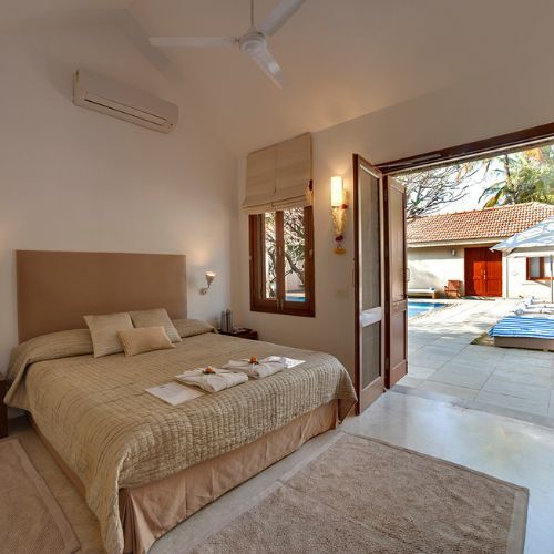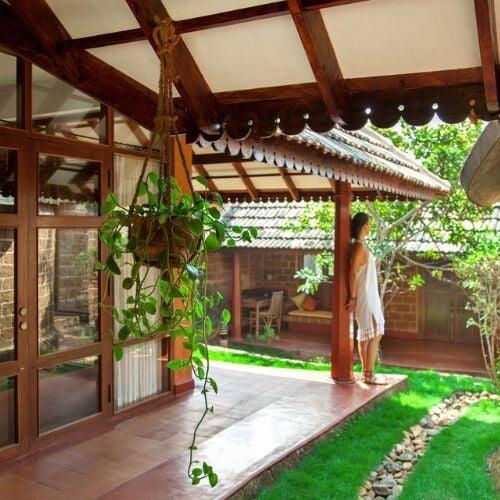 With direct access to the renowned Om beach, this ecological community embodies the local culture, offering a transformative escape enhanced by the stunning natural surroundings. Your accommodation consists of villas designed in the traditional rustic style of the Konkan coast, each featuring upper decks for yoga and air-conditioned bedrooms that open to a central courtyard garden filled with herbs and local flowering plants. This creates a perfect atmosphere for reflection and recuperation during your retreat.