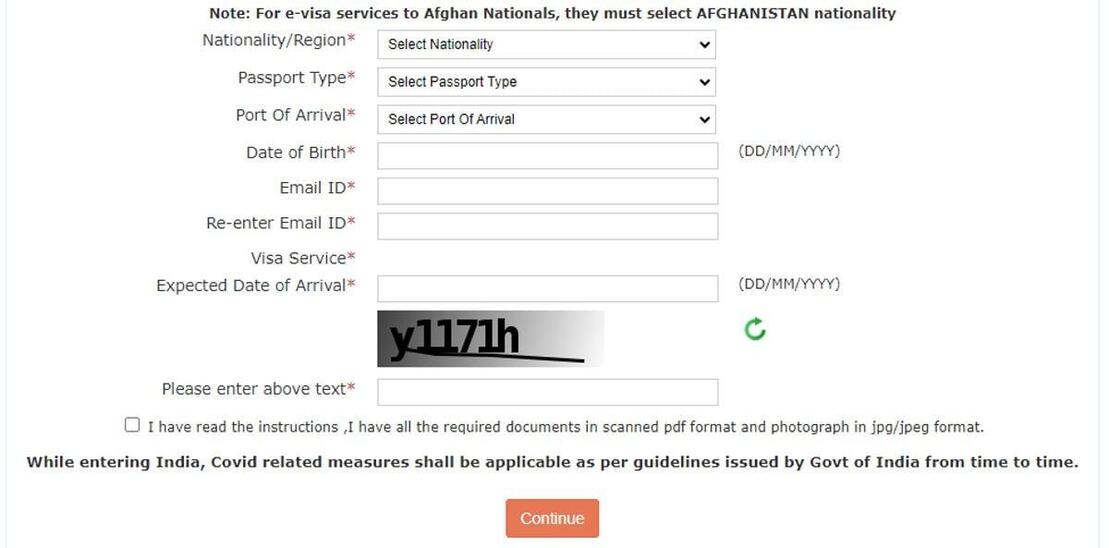 Select ordinary passport (unless you have another type), your nationality, and port of arrival (For eg, if you arrive in Delhi, you can select Delhi Airport).