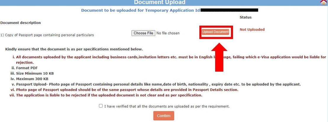 After you upload a file, make sure to click “Upload Document” before selecting confirm.